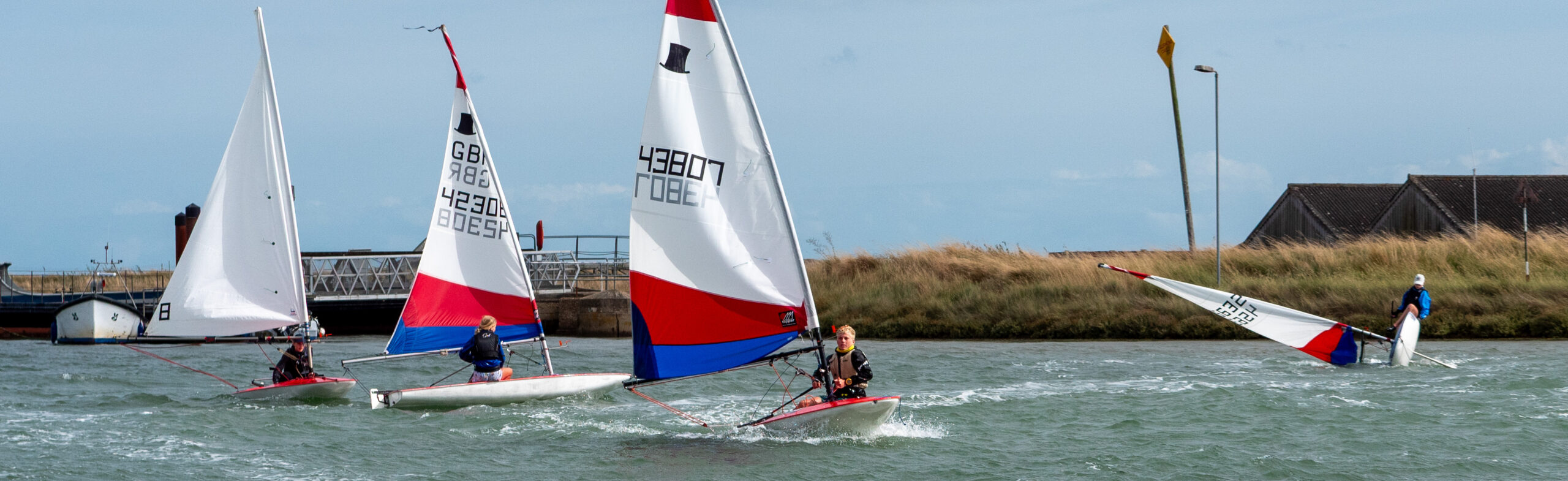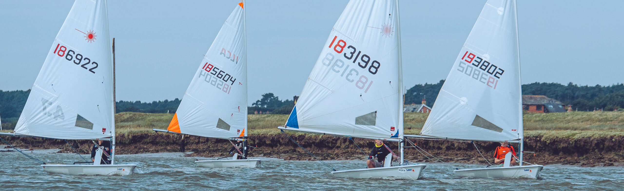 The sailing club has over 270 subscribing members (about 580 people in all). Its premises are a purpose-built Clubhouse, containing a clubroom with kitchen, changing rooms, showers and a race officers’ bridge. The dinghy park fronts onto the river, with a concrete ramp giving access at all states of the tide and there is a pontoon which dries out at low water. Locked storage for oars, outboard motors and petrol is available. There is also supplementary storage for some yacht tenders in a covered (but flooding!) shed on the quay. The club has no moorings available itself; application should be made to the New Orford Town Trust.