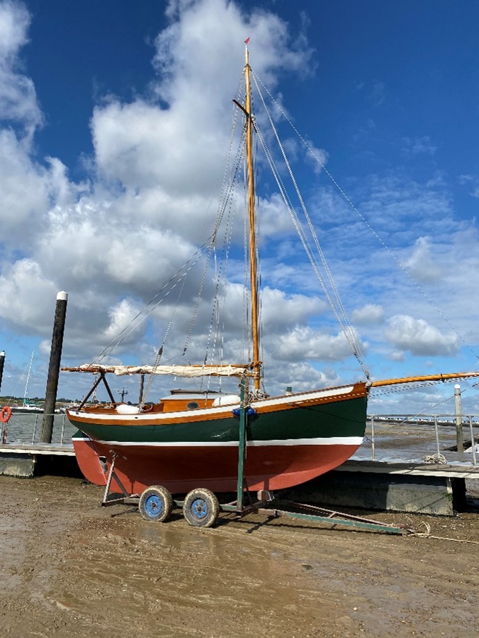 Moored at Orford for the last 18 years and currently at Larkmans Boatyard.