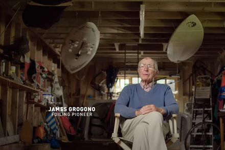 Grog (James Grogono) appears in the SailGP video below after 4.36 minutes. His contribution was all filmed here in Orford.