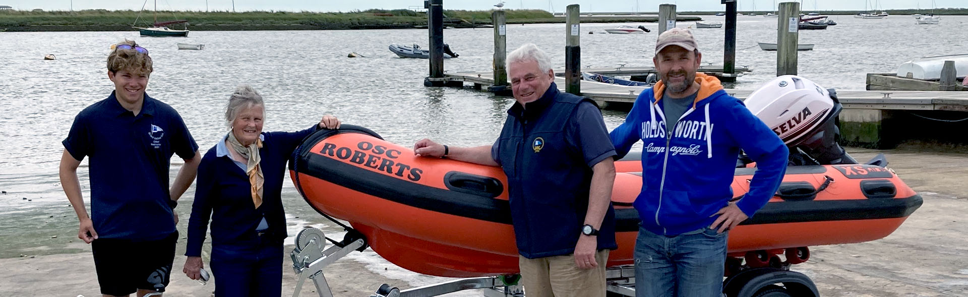 Our new safety boat, the Richard Roberts, has arrived and has been commissioned ahead of the training season which is about to commence. Richard Roberts was the Club President until his death in 2021. He was also a past commodore of the sailing club, spent perhaps more time on the river than on land(!) and lived in Orford for many decades.