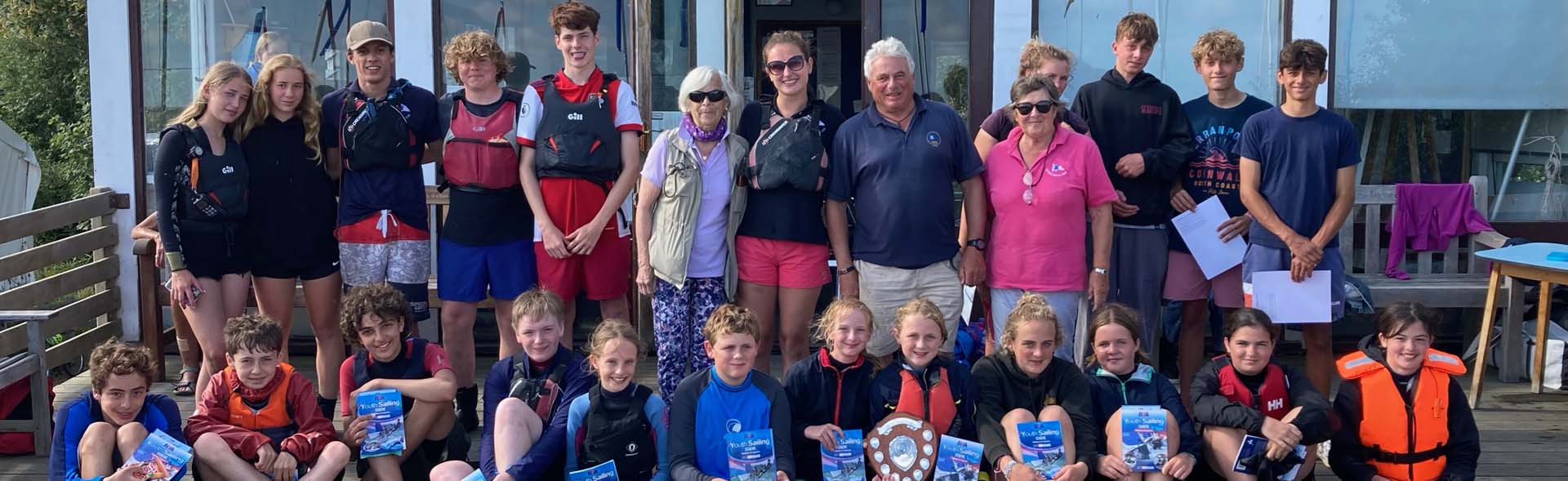 Standing Instructors and Assistant Instructors with centre Liz Feibusch, Chief Instructor Ruby Brint, OSC President James Robinson and Training Administrator Mary Hackett with students, certificates and their log books having completed their RYA Level 2.
